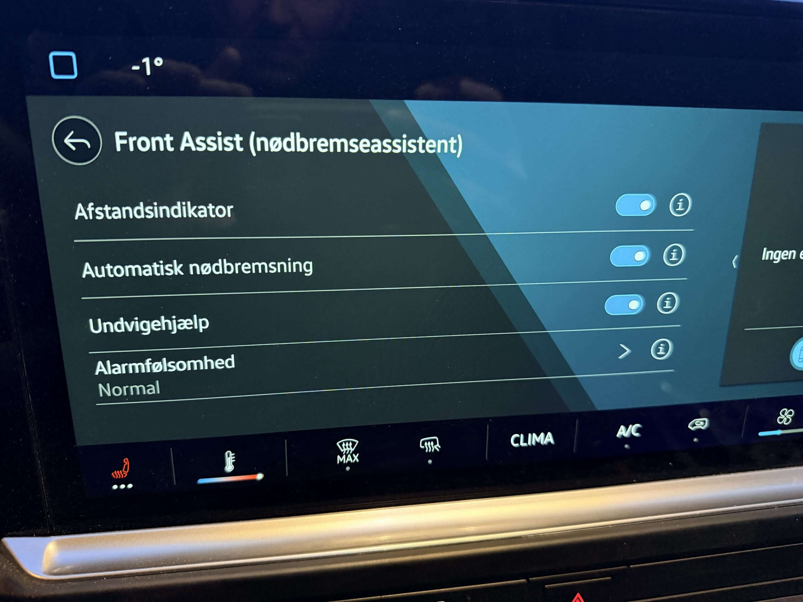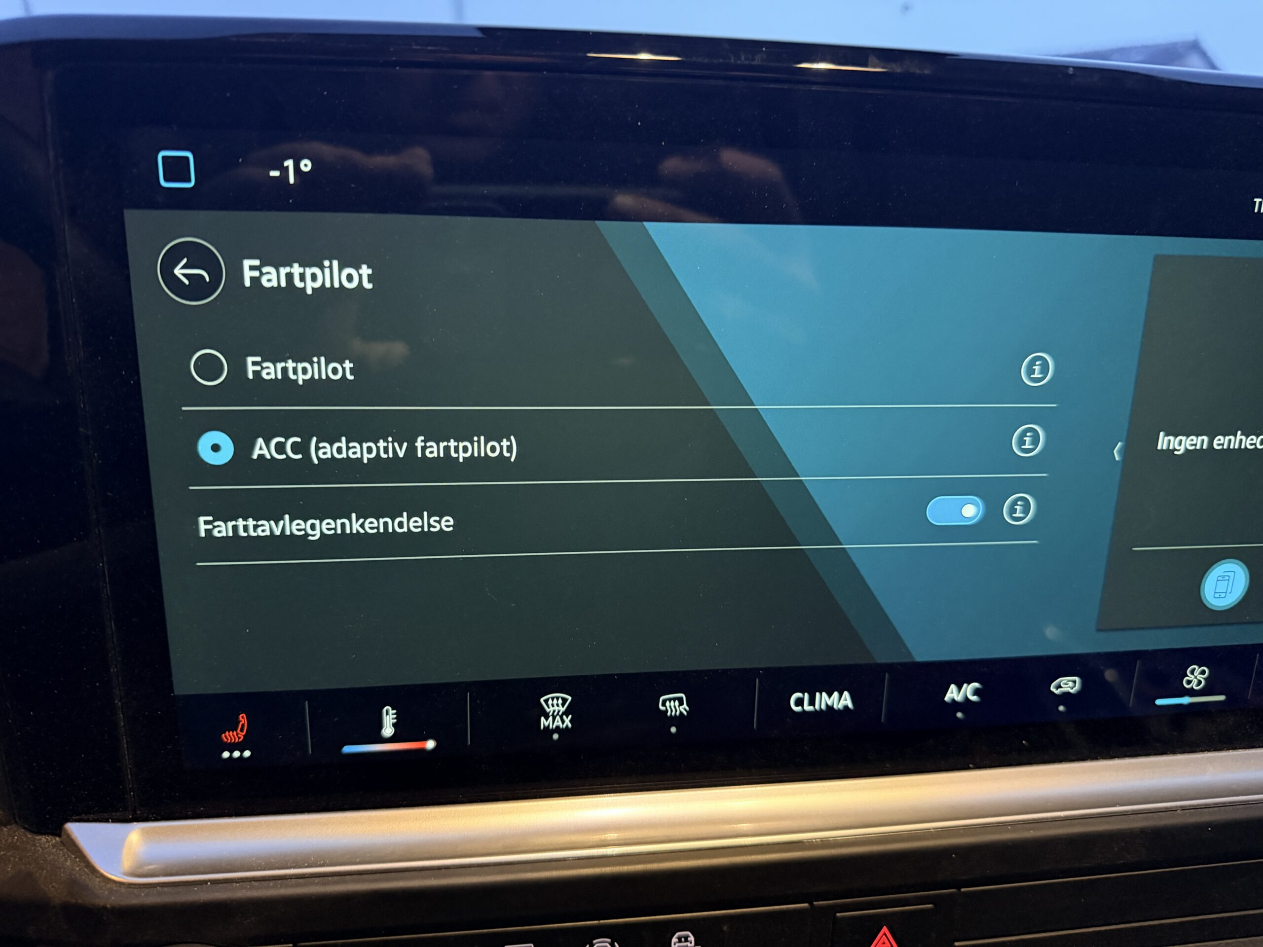 - Afstandsregulering: Du kan indstille, hvor stor afstand du vil have til bilen foran, og systemet sørger for at opretholde denne afstand.
